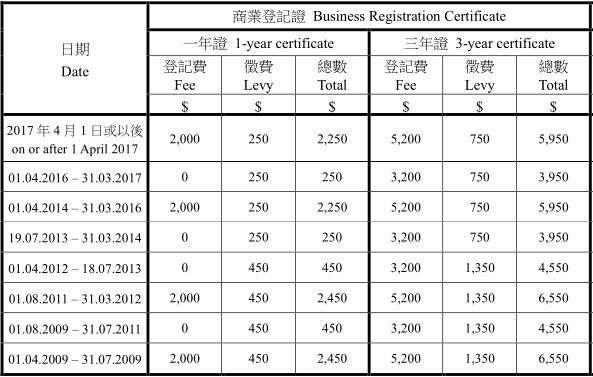 这里你可能注意到了,注册和年审都有商业登记官费这一项,这个费用香港政府方面每年都会根据港府财政预算案的调整而上下浮动。