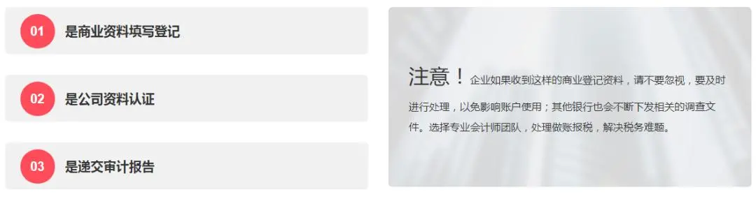 注意!所有报税表均附有声明书,报税人士必须签署证实所申报的资料全属真确及并无遗漏。 ♢ 凡于报税表内少报/漏报利润或收入,或提供错误资料,均属违法。 ♢ 任何人士如无合理辩解而提交不正确的报税表,即属违法,可被罚款港币1万,及加罚相等于少缴税款3倍的罚款。 ♢ 提交不正确报税表意图瞒税是严重的违法行为。经定罪后,最高刑罚为罚款10万港币及加罚相等于少数税款3倍的罚款,以及入狱3年。 ♢ 高等法院上诉法庭曾发出警告,被告人一经定罪,可被判即时入狱。 ♢ 此外,该香港公司在香港的银行账户和资金,包括在港所有资产都将被冻结。 香港税务局明文规定,报税期不以收到利得税表为准,凡是到了报税期的香港公司都必须报税。所以在香港注册的公司若没收到报税表,并不代表无需记账报税。 香港政府倡导企业主动、准时、诚信地报税,香港税务局所发利得税税表起到“提醒催税”作用,是为了提醒香港注册公司做账报税期到了,所以香港公司需在法定报税期限内完成做账报税。 税务合规及CRS税务信息影响? ♢ 选择在香港进行税务申报的优势 香港地区税种少,税率低。企业所得税税率为16.5%。香港无增值税,更无发票概念。因此一张形式收据也可以用来做账,对公司账目进行调整,从而实现税务筹划的目的。 ♢ 选择正规的香港会计师行做账审计 选择正规的香港会计师行,可综合香港公司的实际运营情况,拟定公司的做账审计方案,合理划分做账会计年度,出具正规会计师审计报告,递交给香港税务局,完成税务申报工作。 ♢ 出具正规的审计报告让税务局无处挑剔 香港公司的账目必须要由经过香港会计师公会认可的香港执业会计师操办,并出具符合香港税务条例的审计报告。香港税务局接收报告后一般会在一周内给予受理回执。 CRS/收到银行调查文件该如何处理? 受CRS税务的影响,很多香港公司都有收到银行下发的商业调查信件(电子版/纸质版),一般银行的调查文件都是下发到网银上或是邮箱上,这份商业资料登记文件(调查文件)分为三大部分。